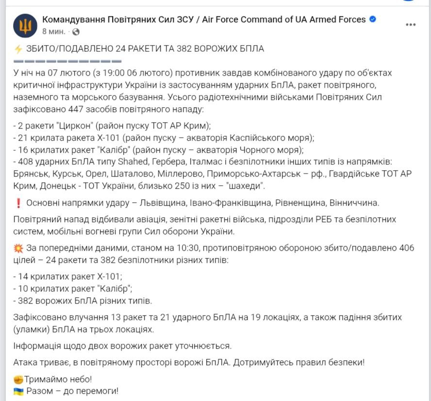Также утверждается, что было сбито 382 дрона из 408.