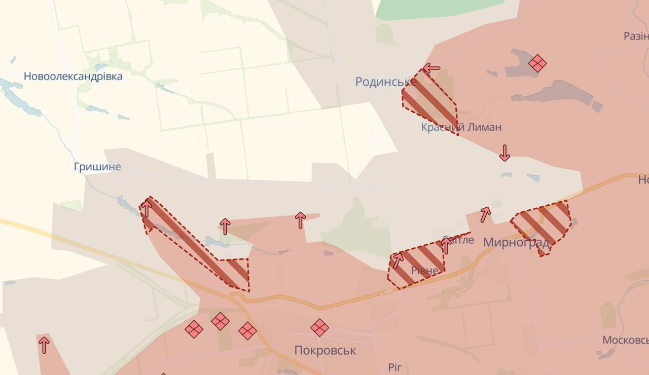 Россияне продвинулись на фронте в районе Покровска и Мирнограда, а также западнее - в районе Удачного и Новониколаевки.