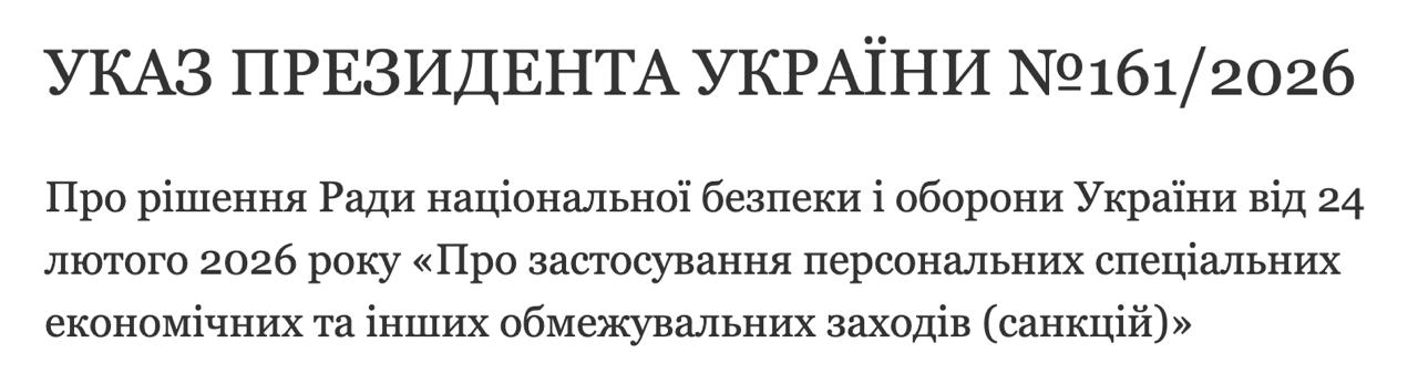 Соответствующий указ №161/2026 опубликован на сайте президента.