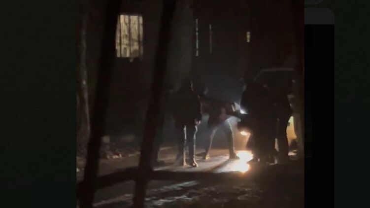 На видеозаписи видны силуэты нескольких человек, слышны мужские голоса, причитания женщины. Видно как кого-то волокут по земле по направлению к машине. Один из мужчин, предположительно из ТЦК, пинком ноги отбрасывает с дороги какой-то предмет на обочину.