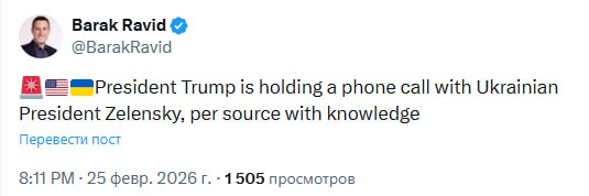 "Президент Трамп проводит телефонный разговор с президентом Украины Зеленским", - написал журналист, ссылаясь на неназванный источник.