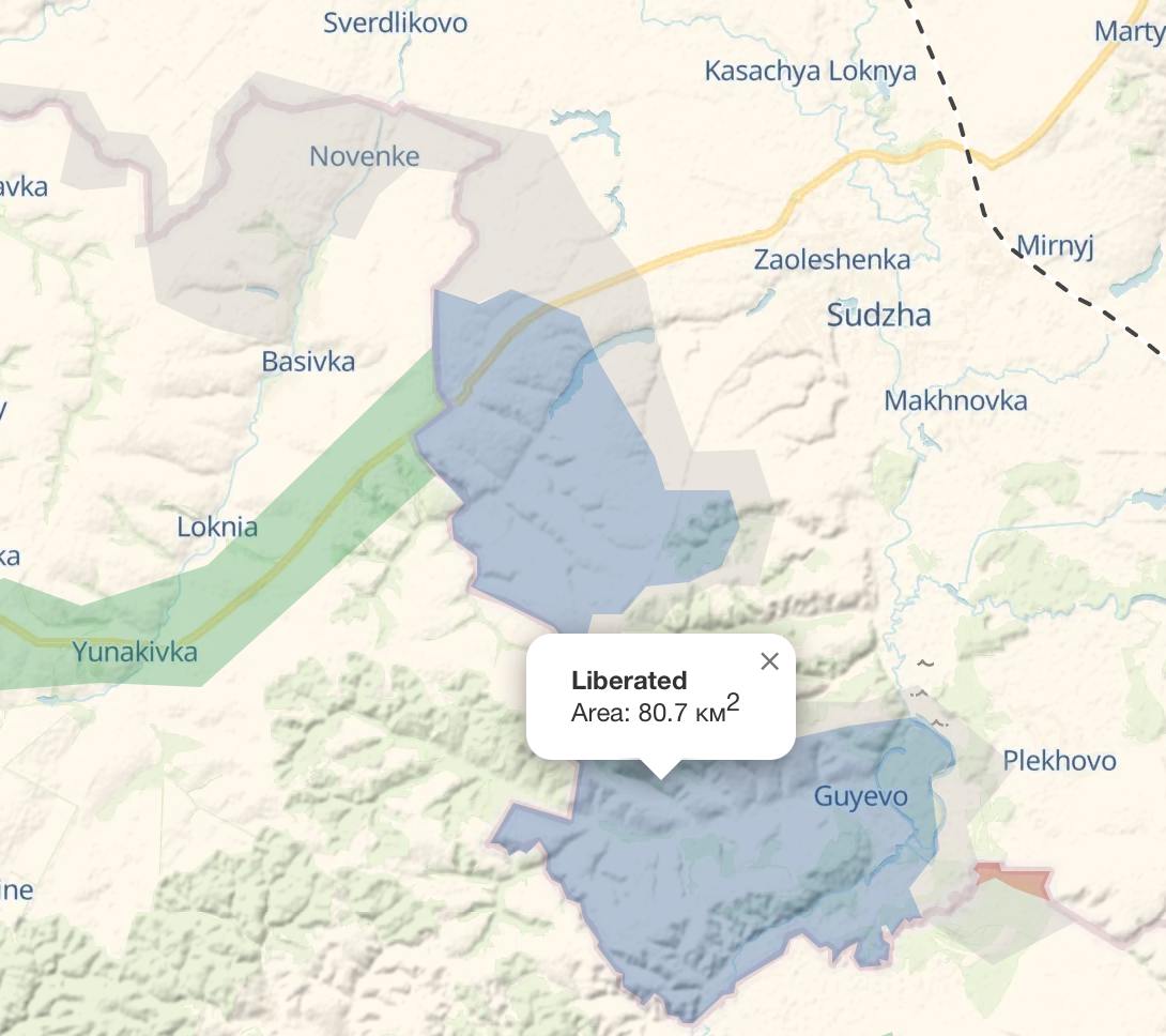Загалом вони взяли ще 30 квадратних кілометрів території Курської області, і тепер ділянку, що контролюється Україною, зменшилася до 80 квадратних кілометрів (що вже менше російського плацдарму під Липцями Харківської області).