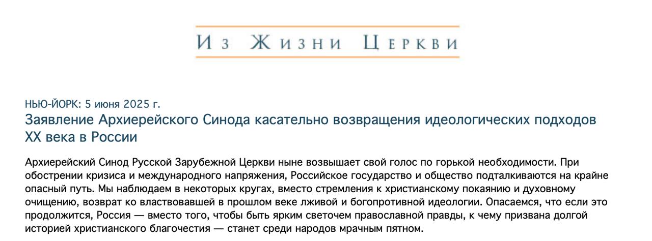 Російська православна церква закордоном (РПЦЗ), самоврядна церква у складі Московського патріархату, розкритикувала "повернення ідеологічних підходів ХХ століття в Росії".