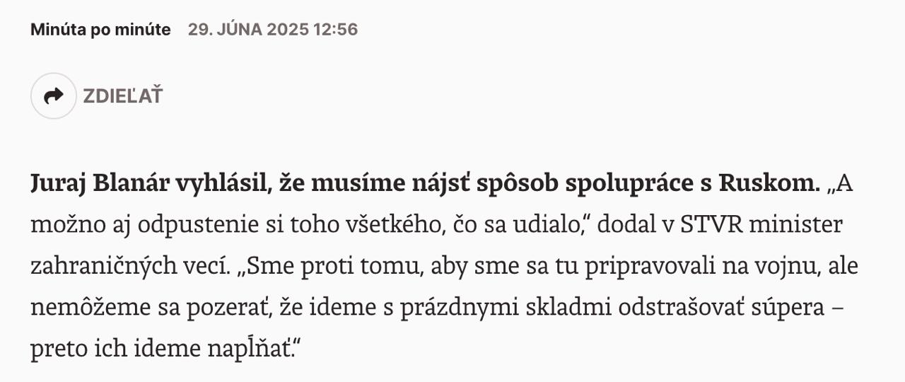 Про це заявив міністр закордонних справ Словаччини Юрай Бланар, повідомляє Dennikn.