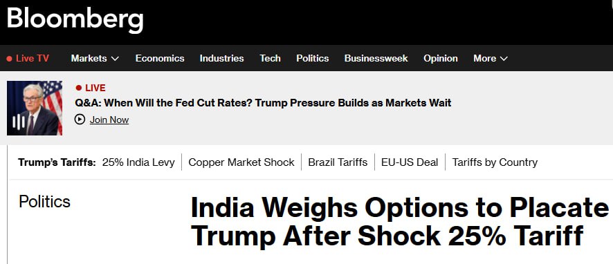 Агентство повідомляє, що Нью-Делі заради зниження напруженості у відносинах з Вашингтоном розглядає варіанти збільшення закупівель американських товарів (зокрема газу), але при цьому, як повідомляють його джерела, уряд прем'єр-міністра Індії Нарендри Моді навряд чи закуповуватиме військове обладнання у США, що є ключовою вимогою американського президента Дональда.