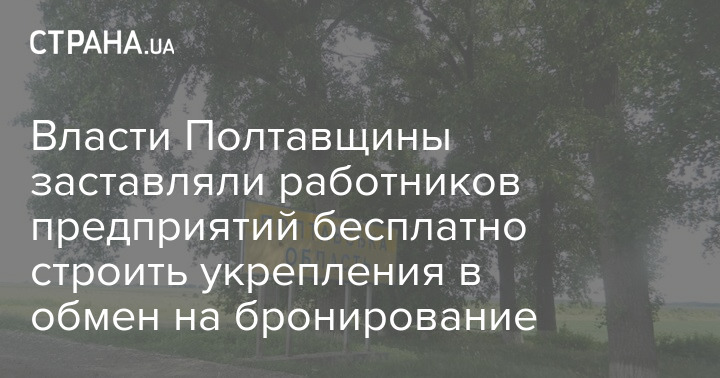 Влада Полтавщини змушувала працівників підприємств безкоштовно будувати укріплення в обмін на бронювання
