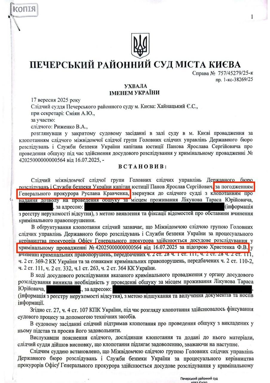 Обшук санкціонував особисто генеральний прокурор України Руслан Кравченко.
