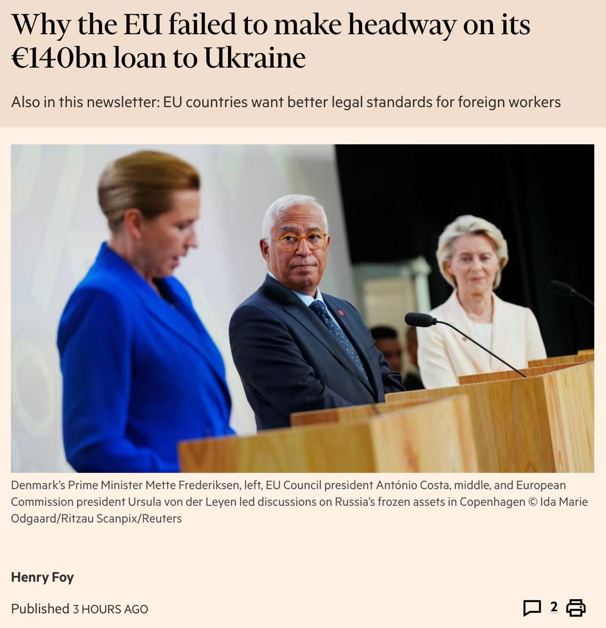 Про це заявив бельгійський прем'єр-міністр Барт Де Вевер на зустрічі лідерів ЄС у Копенгагені, повідомляє Financial Times.