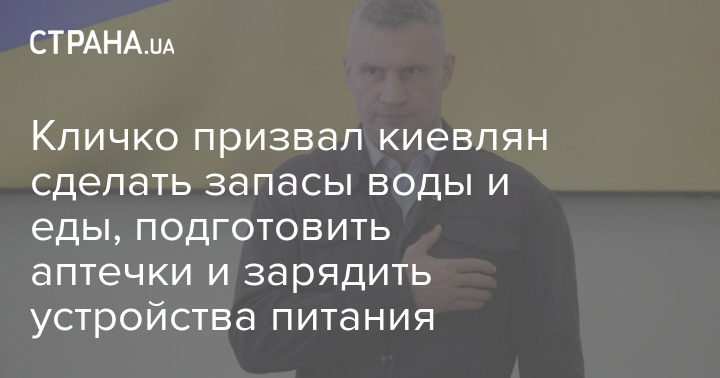 Мер Києва Віталій Кличко закликає мешканців столиці зробити запаси води, підготувати аптечки, набір продуктів харчування та зарядити пристрої автономного харчування.