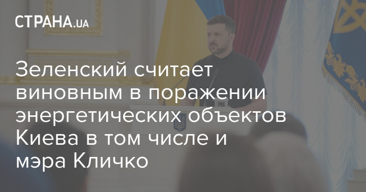 Президент України Володимир Зеленський дав зрозуміти, що вважає винним у поразці об'єктів енергетики Києва, зокрема й мера столиці Віталія Кличка.