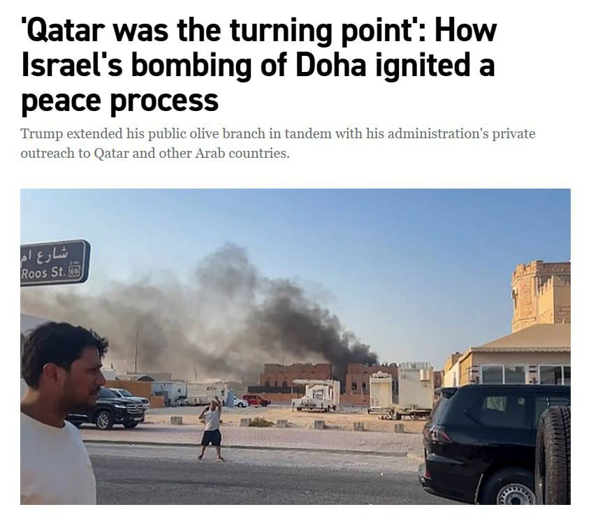 "Президент США став набагато різкішим і прямолінійнішим, і після удару в Досі необхідність мирної угоди стала ще більш невідкладною. Це дозволило президенту чинити максимальний тиск на Ізраїль, що він і зробив. І це справді змусило Ізраїль погодитися на мир", - заявив виданню представник Білого дому.