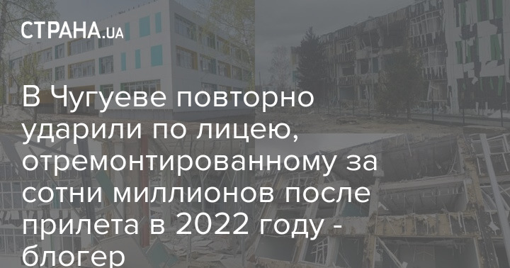 У Чугуєві повторно вдарили по ліцею, відремонтованому за сотні мільйонів після прильоту у 2022 році - блогер