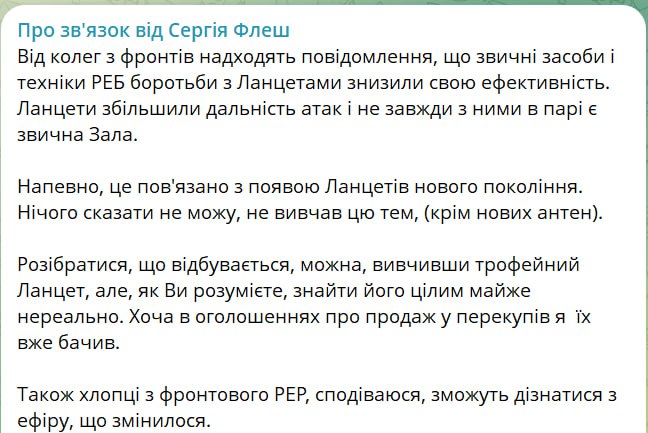 Звичні засоби радіоелектронної боротьби (РЕБ) знизили свою ефективність у боротьбі з російськими безпілотниками "Ланцет".