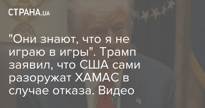 "Вони знають, що я не граю в ігри". Трамп заявив, що США самі роззброїть ХАМАС у разі відмови. Відео