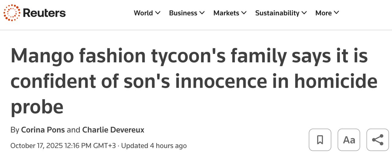 Власника бренду Mango, раніше оголошеного загиблими в горах, могли вбити власний син — Reuters