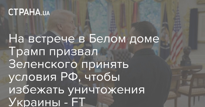 Знімок заголовка на ft.com - Трамп закликав Зеленського прийняти умови Путіна для збереження України