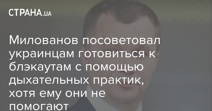 Колишній міністр економіки, а нині радник Офісу президента Тимофій Мілованов спрогнозував масштабні відключення світла у поточному році та порекомендував українцям готуватися до них, займаючись дихальними практиками.