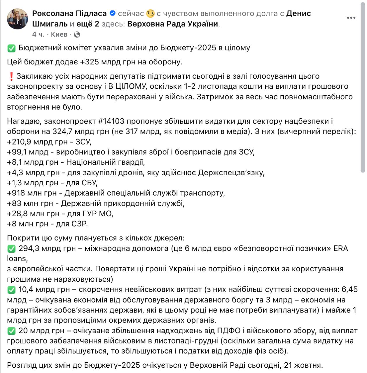 Верховна Рада знову збільшила видаткову частину бюджету на оборону у 2025 році. Законопроект №14103, яким виділяються додаткові 325 мільярдів гривень, підтримали 293 депутати.