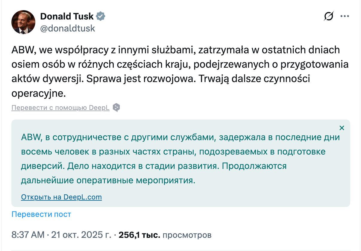 Раніше у Польщі також затримали вісім осіб, підозрюваних у підготовці диверсій. Їхня національність поки не уточнювалася.