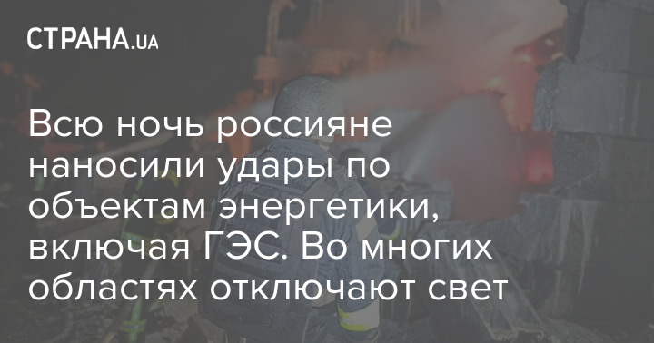 Цілу ніч росіяни завдавали ударів по об'єктах енергетики, зокрема по ГЕС. У багатьох областях відключають світло