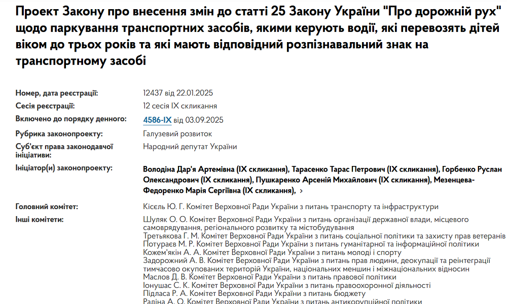 Крім того, Кабінет міністрів визначить порядок створення та облаштування таких місць для паркування, правила їх позначення та підтвердження права на паркування для водіїв з дітьми.
