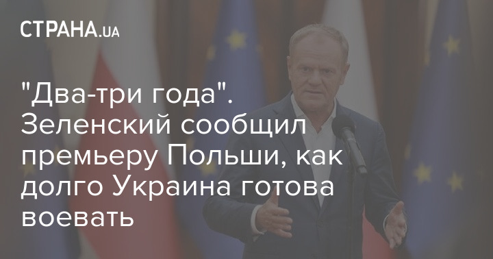 Президент України Володимир Зеленський сказав прем'єр-міністру Польщі Дональду Туску, що країна готова вести бойові дії проти Росії ще "два-три роки".