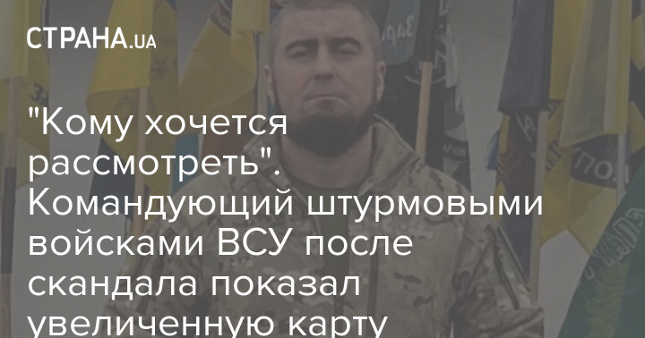 Після скандалу із засвіченням штабної карти з лінією фронту новим командувачем штурмових військ ЗСУ Валентином Манько сам Манько вирішив прокоментувати це, опублікувавши в гарному дозволі ще більшу карту і дописав: "Тим, кому зовсім хочеться розглянути".