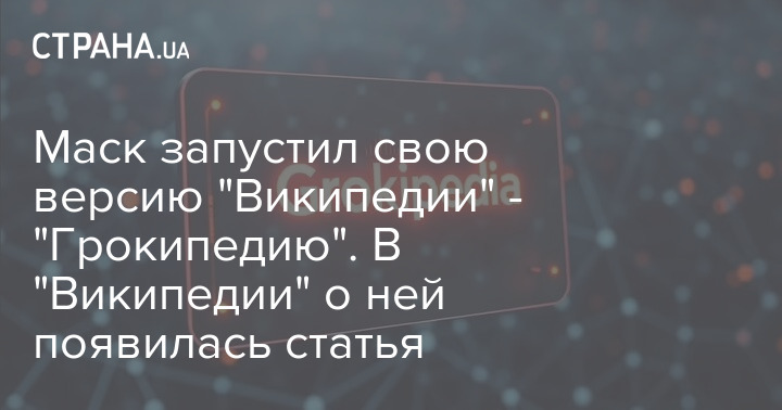 "Grokipedia - це онлайн-енциклопедія на основі штучного інтелекту, розроблена компанією xAI, заснованою Ілоном Маском. Запущена 27 жовтня 2025 року. Маск представив Grokipedia як альтернативу "Вікіпедії", яка, за його словами, повинна "очистити її від пропаганди", - сказано у статті.