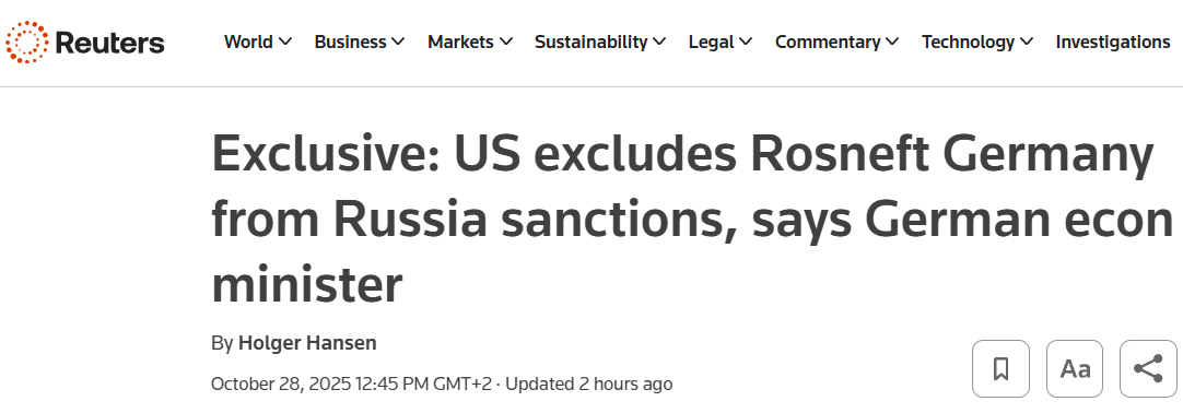 Раніше канцлер Німеччини Фрідріх Мерц заявив, що німецькі дочірні компанії "Роснефти" не повинні підпадати під нові санкції. Докладніше про самі санкції ми писали в окремому матеріалі.