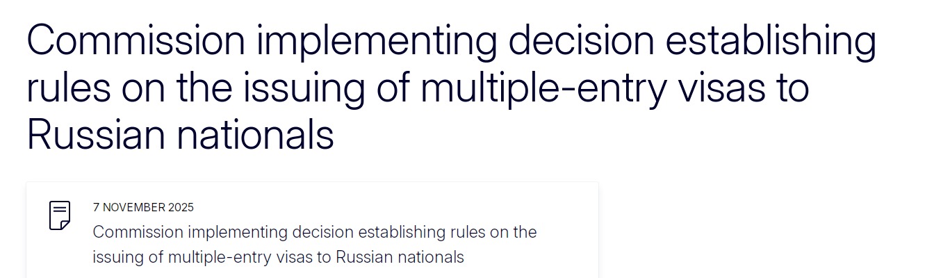 На початку листопада західні ЗМІ писали, що Євросоюз хоче припинити видачу більшості громадян РФ багаторазових туристичних віз.