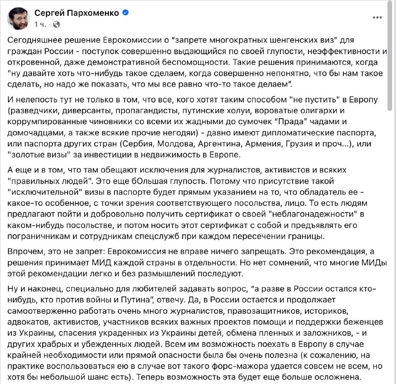 "Такі рішення приймаються, коли "ну давайте хоч щось таке зробимо, коли абсолютно незрозуміло, що б нам таке зробити, але треба ж показати, що ми все одно щось таке робимо", - написав у Фейсбуці Пархоменко.