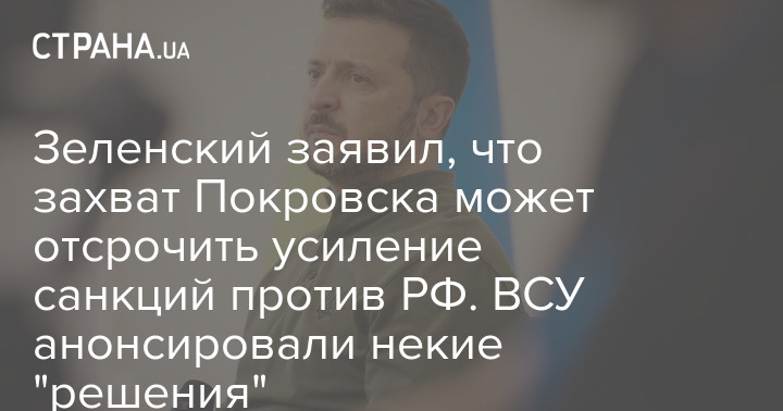Зеленський заявив, що захоплення Покровська може відстрочити посилення санкцій проти РФ. ЗСУ анонсували деякі "рішення"