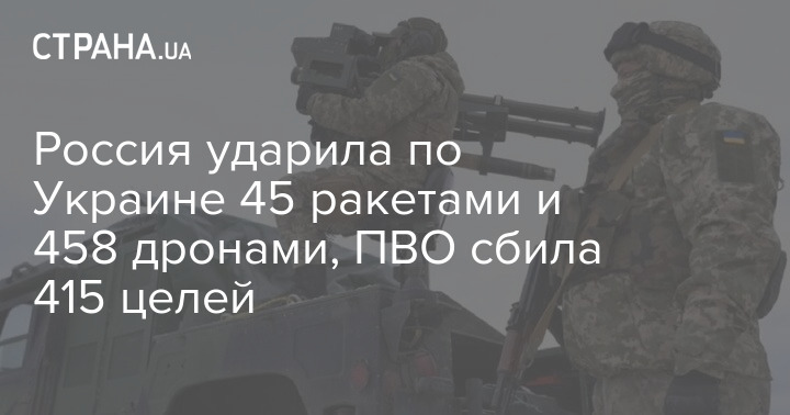 Росія вдарила по Україні 45 ракетами та 458 дронами, ППО збила 415 цілей