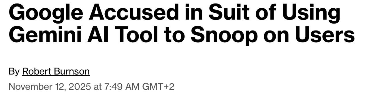 Американська компанія Google звинувачується у використанні ШІ-інструменту Gemini AI для стеження за користувачами. До федерального суду Сан-Хосе (штат Каліфорнія) надійшов відповідний позов.