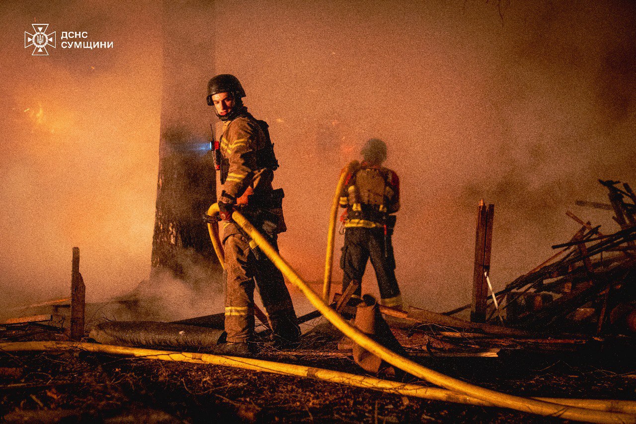 У Сумській області ворог також завдав удару по житловому сектору. Рятувальники ДСНС ліквідували масштабну пожежу в одному із сіл.