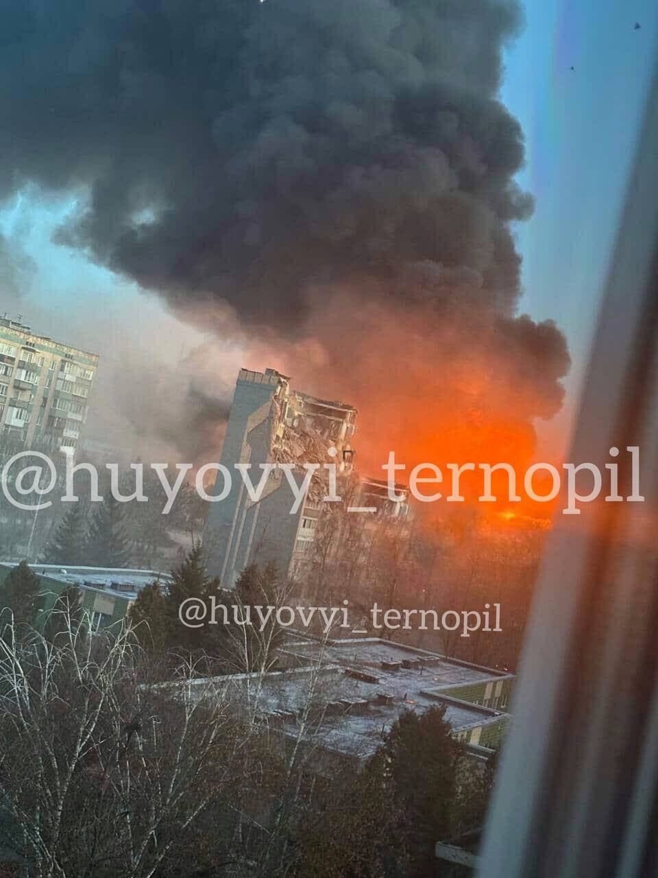 У Тернополі обстрілом зашкодило багатоповерхівку. У будинку немає даху, зруйновано кілька верхніх поверхів.