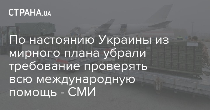 На вимогу України з мирного плану прибрали перевірки всієї міжнародної допомоги - ЗМІ