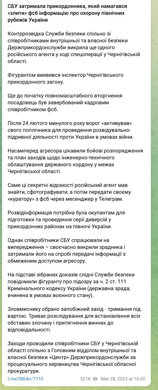 У Чернігові два співробітники СБУ фальсифікували справу про державну зраду прикордонника