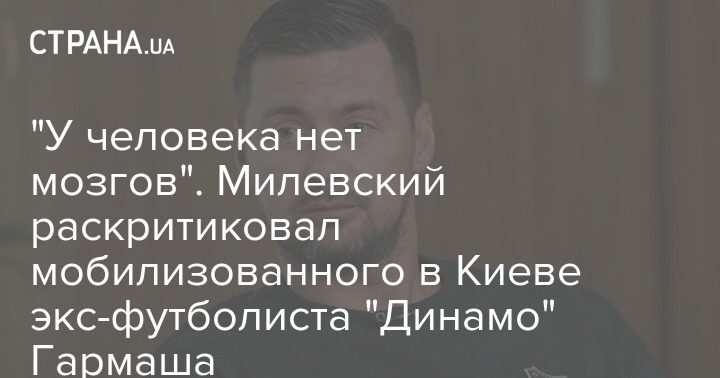 Колишній гравець збірної України з футболу Артем Мілевський заявив, що у екс-футболіста "Динамо" Дениса Гармаша "немає мізків", якщо він їздив уночі Києвом і був мобілізований.