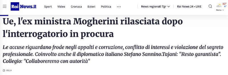 Колишню верховного представника Європейського Союзу із закордонних справ та політики безпеки та віце-президента Європейської комісії Федеріку Могеріні, затриману вчора у справі про фінансування Коледжу Європи, ректором якого вона є, відпустили після допиту.