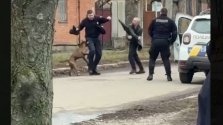 Власника пітбуля заарештували за бійку з патрульними - кадр з відео