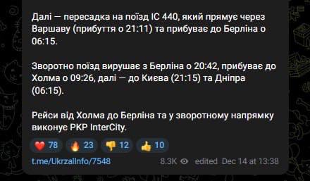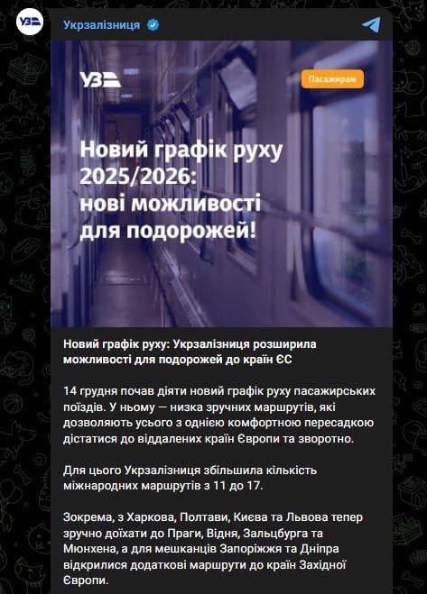 "Укрзалізниця" розширює повідомлення із ЄС. Фото: Telegram