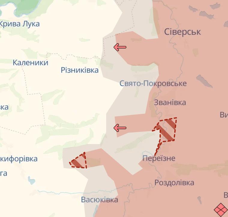 12.34 Армія РФ просунулась на заході Мирнограда і на південь від Сіверська, повідомляє Deep State.