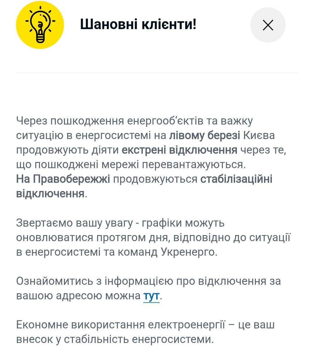 10.08 На лівому березі Києва четверту добу тривають аварійні відключення світла. На правому березі діють графіки.