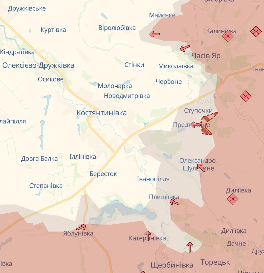 14:05 Армія РФ просунулась під Гуляйполем, Костянтинівкою та Сіверськом, повідомляє Deep State.