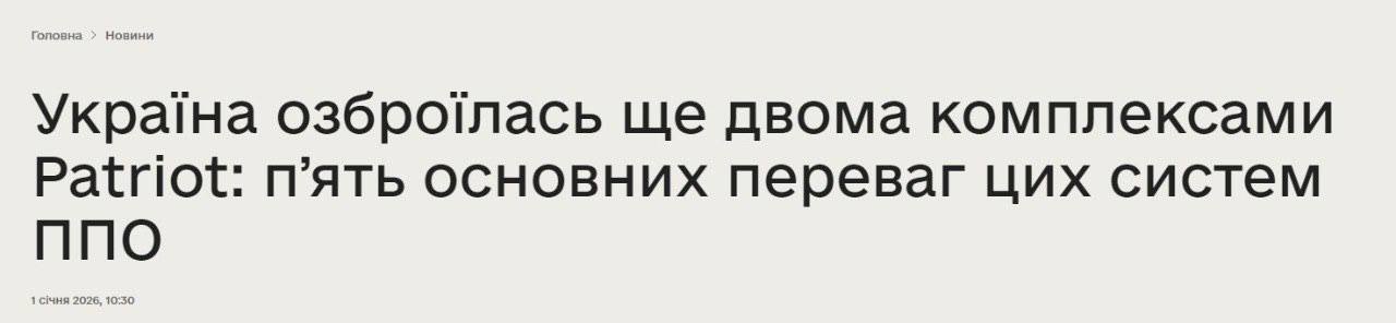 "Це одна з найдосконаліших систем ППО у світі. Призначений для знищення літаків, крилатих і балістичних ракет. Patriot здатний збивати високошвидкісні та складні цілі, забезпечуючи багатошаровий захист для стратегічних об'єктів та великих міст", - додали у відомстві.