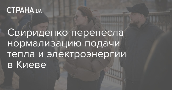 Прем'єр-міністр України Юлія Свириденко, яка раніше обіцяла до вчорашнього вечора відновлення теплопостачання в Києві та перехід на планові графіки відключення електроенергії (ні того, ні іншого досі не відбулося), перенесла термін нормалізації роботи комунальних служб на четвер, заявивши, що для покращення ситуації "потрібний час".