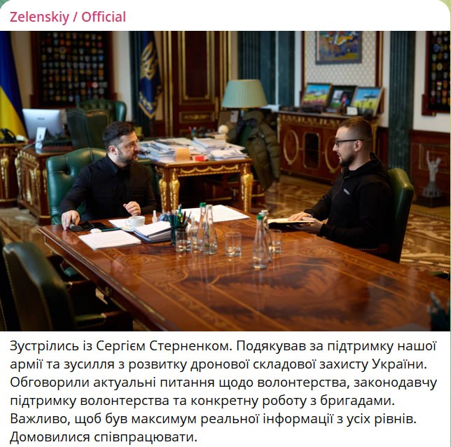 Президент України Володимир Зеленський зустрівся із блогером Сергієм Стерненком.