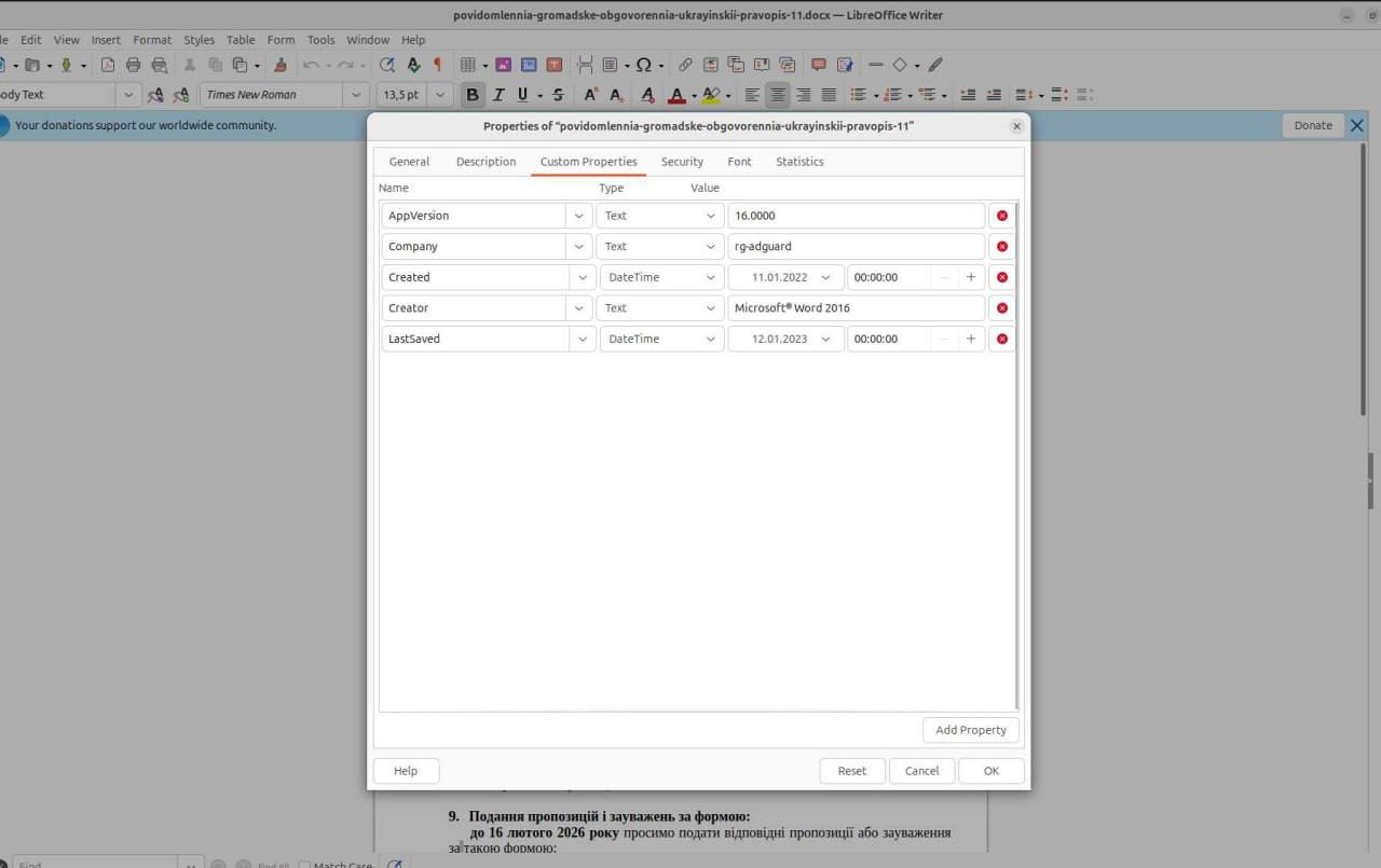 Також деякі користувачі звернули увагу, що документ створено у російськомовній піратській версії програмного забезпечення Microsoft Office.