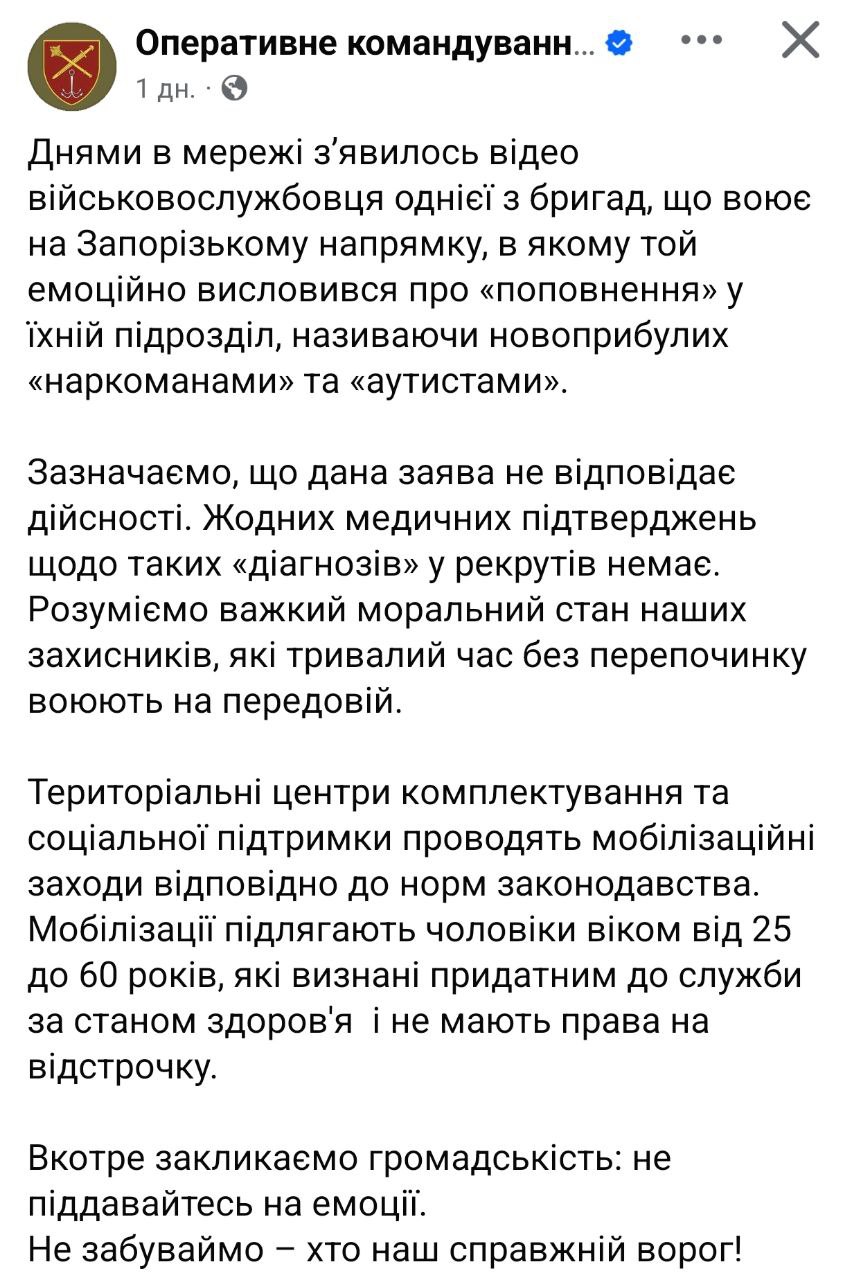 У свою чергу оперативне командування "Південь" підтвердило, що відео справді записане військовослужбовцем однієї з бригад, що воюють у Запорізькій області.